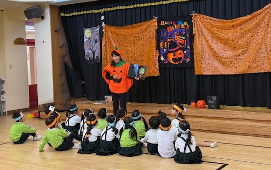 月に2回Englishdayがあり、ハロウィンとクリスマスは参観を兼ねています。